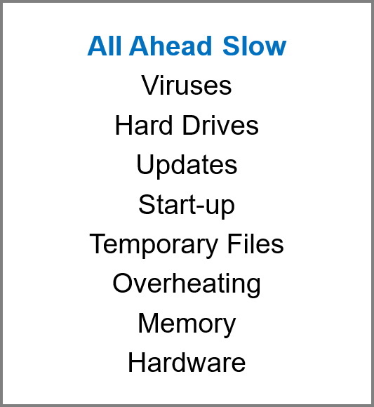 The following is a list of specific factors that can affect the speed of your computer: